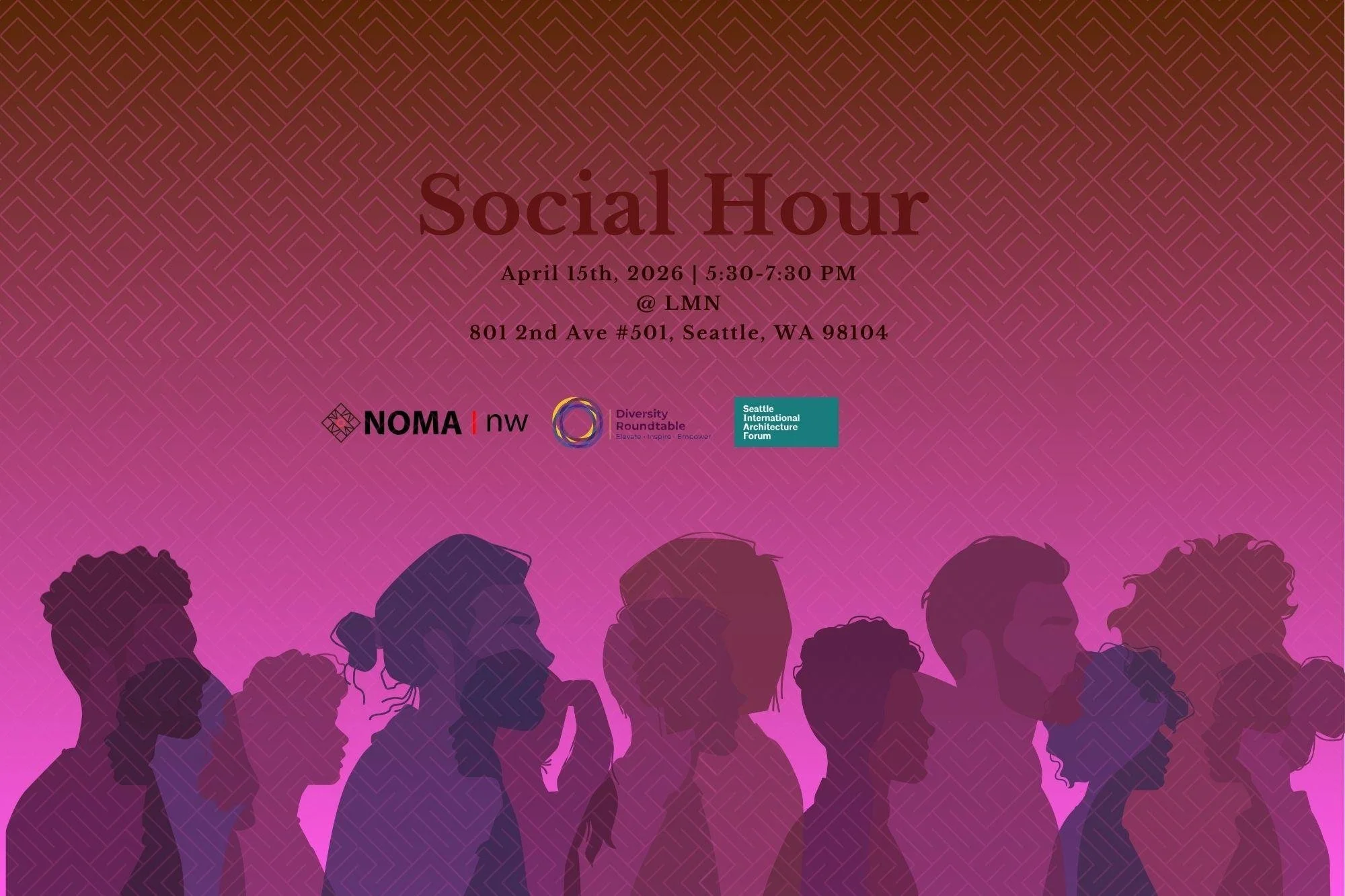Back to All Events NOMA|nw/DRT/SIAF Social Hour Wednesday, April 15, 2026 5:30 PM 7:30 PM LMN Architects 801 2nd Avenue #501 Seattle, WA, 98104 United States (map) Google Calendar ICS Join NOMA|nw, Diversity Roundtable, and the Seattle International Architecture Forum for our second joint Social Hour of 2026 at LMN Architects’ downtown Seattle office! See you there! Register Here